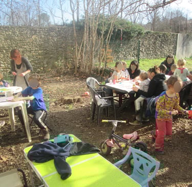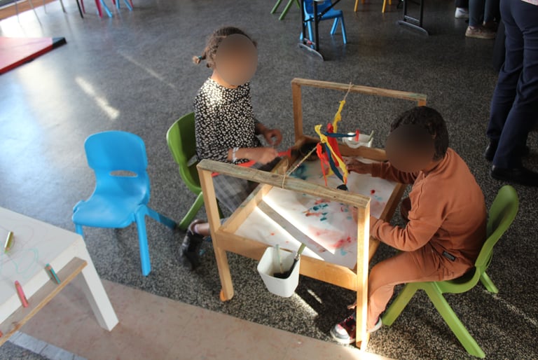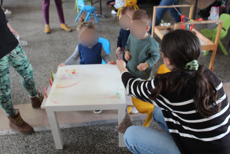 Les ateliers créatifs dédiés aux enfants sont des espaces où la créativité est encouragée et développée chez les plus jeunes. Ces ateliers offrent aux enfants l'opportunité de s'exprimer à travers diverses formes d'art. Les enfants sont stimulés par le matériel mis à disposition sur chaque table. Ces ateliers favorisent le développement de nombreuses compétences chez les enfants, tels que l'imagination, la créativité, la concentration, la coordination motrice et la confiance en soi. En participant à ces ateliers, les enfants découvrent le plaisir de créer, d'expérimenter. Il apprennent également le respect des autres et de soi même en essayant de ne porter aucun jugement sur ce qui est fait, en attendant son tour si le matériel est utilisé.